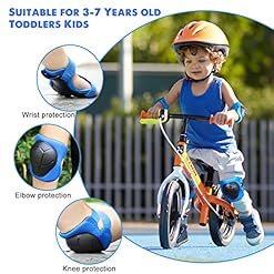 【Adjustable Size】-Size S Knee and elbow pads suitable for 3-7 years old toddler weighs 33-55 Ibs(15-25kg) and M for ages 6-13 children weighs 55-99 Ibs(25-45kg). upgrade Adjustable Elastic Straps and Velcro Closures to fit at different ages children to cling to body better and moves freely at the same time.