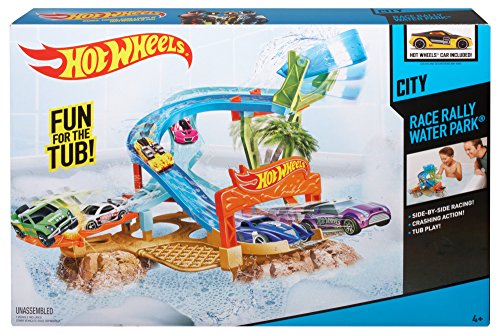 Hot Wheels Race Rally Water Park Playset will be great fun for any child over age three who likes to race cars. This race set has the added excitement of water so it can be played with in the bathtub or pool on a hot summer day.