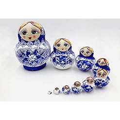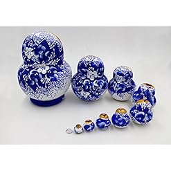 About 10 pcs. Beautiful Wooden Russian Nesting Doll Blue