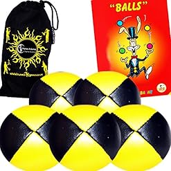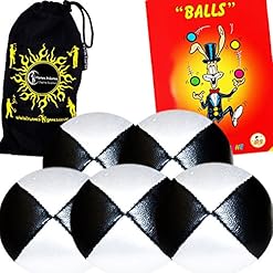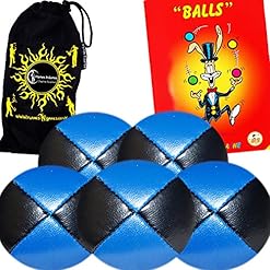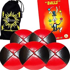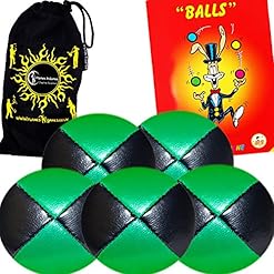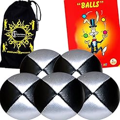5x Pro Juggling Balls – Deluxe (LEATHER/PU) Professional Juggling Balls Set of 5 + Mister Babache Ball Juggling Book of tricks, and Fabric Travel Bag.