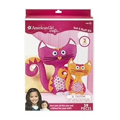 Features. American Girl Kits let your childs creativity shine with a collection of fun-to-make projects. Sew Stuff Cats- Each pre-cut felt piece in this kit features perforated stitch guides making it simple for girls to sew this sweet pair of Orange and Pink cat pillows one for you and one for your doll. 39 piece kit includes 18 felt pieces 10 felt stickers 4 gems stickers 4 bundles of floss needle and treader 100 polyester stuffing and easy step-by-step instructions. You will also need scissors a pencil and a ruler. Finished sizes – 10 x 9 and 6 x 5.5 in.. For ages 8 and up. Item Weight – 0.45 lbs.