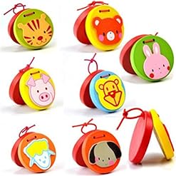 AxiEr Lovley Animal Pattern Wooden Finger Castanet for Baby Early Education 7pcs/set