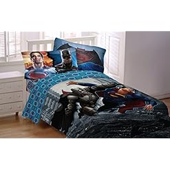Bring the action of DC Comics Batman vs Superman to your room with this awesome bedding set! Twin Size Contains: One twin/full comforter measuring approximately 72 x 86 inches (183 x 218 cm). One twin flat bed sheet, 66 x 96 inches (168 x 244 cm). One twin fitted sheet. Sheets fit a standard twin mattress of 39 x 75 inches (99 x 191 cm). One standard pillowcase, 20 x 30 inches (51 x 76 cm) to fit a 20 x 26 inch (51 x 66 cm) pillow. Full Size Contains: One twin/full comforter measuring approximately 72 x 86 inches (183 x 218 cm). One full flat bed sheet, 81 x 96 inches (206 x 244 cm). One full fitted sheet. Sheets fit a standard full mattress of 54 x 75 inches. Two standard pillowcases, 20 x 30 inches to fit 20 x 26 inch pillows.