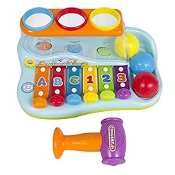 Best Choice Products presents you the enlightening & intellectual xylophone. This musical toy will keep your child entertained with its colorful keys and noise making buttons. The xylophone does not need any batteries so it allows your baby to enjoy the sound effects without the risk of it powering off. Your baby has the option of pressing the buttons or hitting the keys of the xylophone with a toy hammer. Three balls are also included with the xylophone that your baby can hit into the holes making a sound effect when the balls hit the keys. The enlightening & intellectual xylophone will provide endless enjoyment for your baby. Specifications: product dimensions: 10”x 6.5” x 4.8”; weight: 0.7 lbs.; color: multi- color.