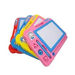 *WONDERFUL DESIGN* The Mini Color Magic Drawing Board Coming with 4 Colors Areas on The Drawing Screen (Yellow, Green, Blue and Red).It includes a Large Drawing Screen with 1 Easy Slider Eraser, 3 Snap Fit Shaped Stampers and 1 Pen