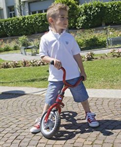 Helps the child gain balance. Seat adjusts from 13 up to 15 inches in height