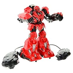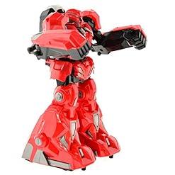 Large 9 inch tall fighting robot. The robot is controlled with IR controller with 2 handles that allow punching with one or both arms, move forward back turn right and left. The robot has lights and sound, when hit 3 times in the face it will anounce game over