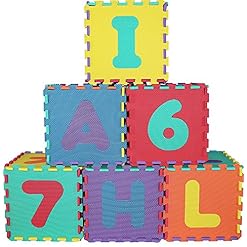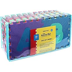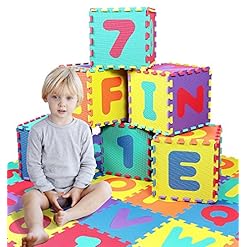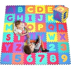 36 multi-colored foam interlocking tiles, puzzle mat with removable letters and numbers