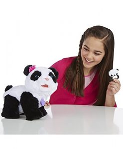 Not everybody can have their own little baby panda! This Pom Pom, My Baby Panda pet wants to belong to you, and she looks and feels like a real panda! When you talk to her, she responds to you with more than 45 responses, and she walks to you every time you shake her rattle. When it’s snack time, she’s got a bottle you can feed her with, and she wiggles and giggles when it’s playtime! She even talks to your Get Up & GoGo My Walkin’ Pup pet (sold separately). And she comes with a blanket for sleepy time and a bib, bowl, and spoon for feeding time! There’s no end to the cuddly fun when you’ve got a baby panda pal! FurReal Friends and all related characters are trademarks of Hasbro.