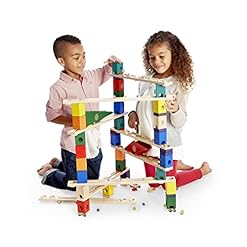 Hape Quadrilla is a High Quality Wooden Marble Run Construction System. It provides QUALITY TIME for the whole family to play together. The BEST GIFT for your loved ones. It provides endless creative building possibilities and encourages spatial thinking and problem solving. Each of the seven different color blocks has a different function and it’s the world’s only kinetic marble run. Autobahn has won “Spiel Gut” (Good Toy) Award and Oppenheim Toy Portfolio Platinum Award. Providing over a thousand happy playing hours, Quadrilla is worth every penny. All Quadrilla marble run sets are crafted with heirloom quality birch and rubber wood for long-lasting marble racing fun. Hape Toy finishes are all non-toxic, child safe and of the highest quality. Hape constructs their toys using FSC accredited wood products. Hape toys stimulate children through every stage of development and help nurture and develop their natural abilities. All Hape products meet or exceed all applicable safety standards. This 175-piece set includes marbles, rails, and high velocity seesaws and accelerators. Autobahn is all about speed. Straight rails, high-velocity seesaws and an assortment of accelerators provide hours of constructive Quadrilla play. Quadrilla’s Autobahn can be combined seamlessly with Quadrilla’s other marble run sets.