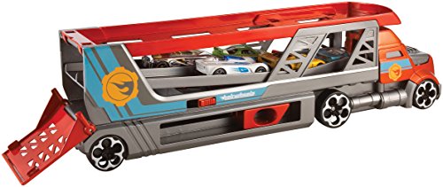 Haul ’em and Race ’em! Hit the streets of Hot Wheels City! Now kids can haul their cars around and send them flying on a high-speed race with this cool transporter that includes a built-in, kid-powered launcher. With room for up to 14 Hot Wheels vehicles, boys can take their favorite Hot Wheels cars wherever they go! Includes three Hot Wheels vehicles so the fun starts straight out of the box. A great gift idea any boy will love! Each sold separately.