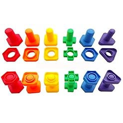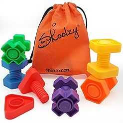 Jumbo Nuts and Bolts Set with Tote 12 Pc by Skoolzy – Occupational Therapy – Matching Fine Motor Toy for Toddlers Preschoolers – Free Activity Download