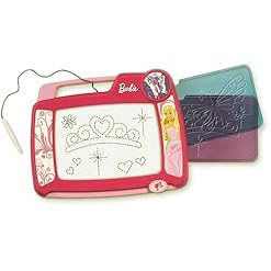 Barbie Kid tough doodler with 2 stencils. Tethered in the center for left and right handed use. A great toy for the home, the car or anywhere your child wants to create.