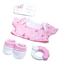 6 PIECE SOFT BASKET GIFT SET includes charming pink fabric basket, hat, pretend hospital bracelet, removable 1 piece diaper, shirt, rattle and Birth Certificate