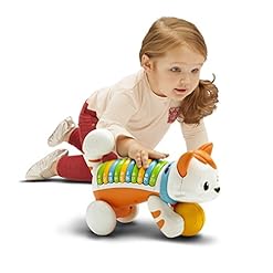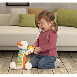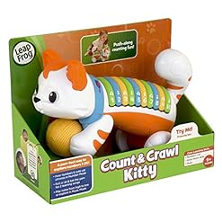 Counting is the cat’s Meow with Count & crawl Kitty. Kids 9 months and up can press Kitty’s colorful keys to hear fun and Frisky phrases about numbers 1-20, explore musical notes from high to low and create their own tunes. Younger babies will love sitting and batting Kitty’s yarn to hear special counting and learning songs, such as “tummy, whiskers, tongue and paws.” once on the move, little ones can crawl, push and learn along with kitty while developing number and motor skills. Comes with three AAA demo batteries and a parent Guide.