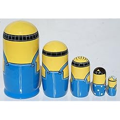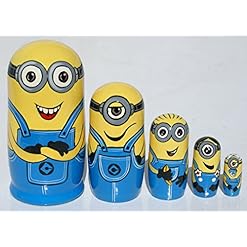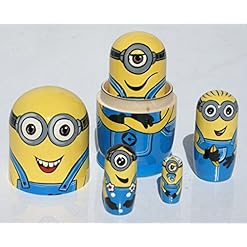 Minions Matryoshka Wooden Nesting Stacking Dolls Handmade Despicable Me Movie Characters Painting Wood Toy Kids Gift Room Decor Art 5pc 6 1/2in