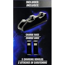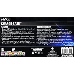 Conveniently store and charge two DUALSHOCK 3 wireless controllers with Nyko’s Charge Base for PlayStation 3. The Charge Base for PlayStation 3 comes with 2 custom USB charge adapters that attach to the Mini USB port on the controller, leaving the ergonomics and grip of the PS3 controller unchanged. The patented adapters allow for easy drop and charge functionality – no additional cords, wires or plugs needed. The dual port recharging dock is AC powered and plugs into any standard wall outlet, requiring no cables back to the console. The low-profile design allows for the Charge Base to fit easily in entertainment centers while the LED charge indicators keep you notified of the charging status.