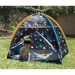 Tent size: 48″ X 48″ X 42″, Glow-in-the-dark stars that are light activated and great galaxy graphics
