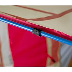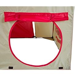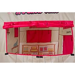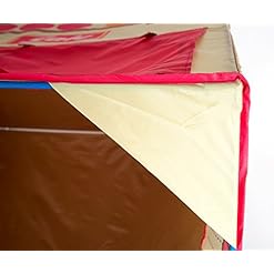 Tent size: 58″ X 48″ X 58″ high, 2-In-1 Grocery/Puppet Theatre, Mesh top-panels and windows, and a tunnel port with roll-up flaps