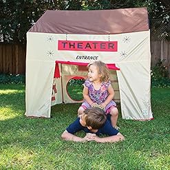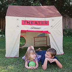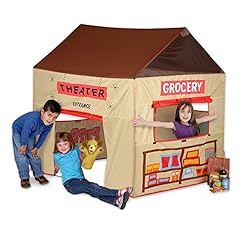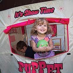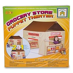 Pacific Play Tents Grocery and Puppet Theater Tent, features a grocery store one side and a theater on the other. Lights, camera, action! With this completely self-contained playhouse, several puppeteers can present a spectacular performance. Or, your little one can go grocery shopping! This fun filled tent provides hours of imaginative playtime for all the little actors and shoppers, let your imagination be the guide. Sturdy Polyurethane-coated shock-corded poles are color coded for easy assembly. Features mesh panels for ventilation and easy viewing windows, and tunnel ports with rollup flaps. Easy cleaning with a damp cloth and mild soap. Carry bag included.