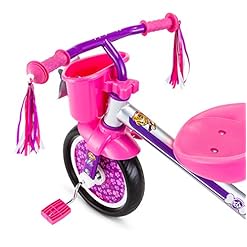 The Paw Patrol Skye 10 inch tricycle is designed for ages 2-4 and is equipped sturdy steel frame for a safe ride. The adjustable seat is easy to adjust to best fir your child and the steering limit handlebar for rider safety.