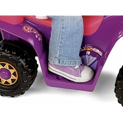 All the sporty ATV styling of the Lil’ Quad mixed with all the fun of Dora the Explorer! It features cool Dora graphics and colors, built-in footrests and a cute cargo rack on the back. Designed especially for toddlers, it has easy push-button operation for simple stop and go. And it rides low, so it’s easy for little ones to get on and off by themselves. It’s as sturdy as it looks—and just as much fun to drive!