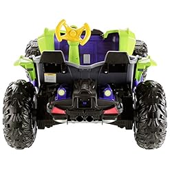 The Fisher-Price Power Wheels Teenage Mutant Ninja Turtles Dune Racer provides a safe and fun way to get your kids into the driving action. It features cool Teenage Mutant Ninja Turtles graphics & colors and a Monster Traction drive system that enables it to go on hard surfaces, wet grass, and rough terrain. Its sturdy steel frame with flashy “chrome” accents boasts an open cockpit design that is roomy enough to handle two riders. And with two forward drive speeds, one reverse speed, and a 12-volt rechargeable battery, this Dune Racer offers hours of off-road fun for your adventurous little one!.