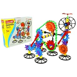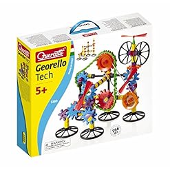 Build elaborate three-dimensional structures, then attach the gears and get everything moving with an amazing chain reaction effect. This clever construction set is really unique because pieces can be connected even diagonally! Georello Tech includes an exceptional universal joint that transmits rotation to distant gears on different levels thus reproducing a fundamental mechanism found in many kinds of machinery. The universal joint system gives children great creative freedom as they can build separate structures with long rotating connections with exciting results. Also included are the new chain and the elastic belt that transmit rotation to distant gears. Georello Tech will not only help your child discover the first principles of mechanics, but most of all, it will also guarantee hours of great fun. Totally unbreakable and safe.