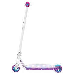 The legendary scooters that started it all. Shred the pavement, bust out big tricks, or just cruise around town in style. With innovative design, quality construction and cool features, these are the scooters that sparked a revolution. Become the life of the party with the all-new, light-up Party Pop. Step on the deck to fire up the pulsating multi-color lights, then keep the fun rolling as you take this light show on wheels on an kick powered tour through the neighborhood. With a steel frame, handlebar and fork and urethane wheels- this scooter not only looks cool but is good quality. Some assembly required. Powered by two CR2032 lithium batteries (included and replaceable). Recommended for ages 6 and older and will support a rider up to 143 pounds. Read and understand the enclosed owner’s manual before riding. The buyer and rider of all Razor scooters are responsible for knowing and obeying all local, state and federal regulations regarding the riding and use of scooters.