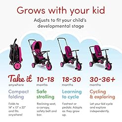 MADE FOR KIDS – Going from a push tricycle stroller for infants to a full toddler tricycle suitable from 9 months to 3 year old, the smarTrike STR3 6 in 1 tricycle was designed to help your baby develop motor skills, confidence, and balance as they learn to ride independently.