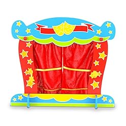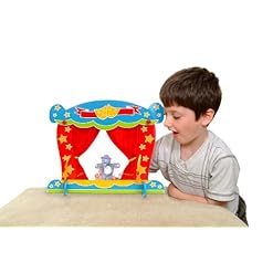 Have a look at our stunning table top finger puppet theatre. Brightly painted wood design with shiny fabric curtains that open by pulling the cords. Wooden pieces slot together very quickly and easily (no tools required) making it great for impromptu living room performances and it easily folds up to put on the show anywhere!