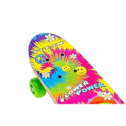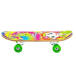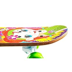 This skateboard features a 28″ X 8″ maple deck, Double sided heat transfer graphic, Clear sand anti-slip grip on top of deck, 5″ plastic trucks and base, 608Z bearings, 50mm x 30mm wheels, PVC cushion Complies with Consumer Product Safety Improvement Act (CPSIA) of 2008 HR4040 testing safety standards and Formaldehyde free on wood.