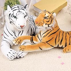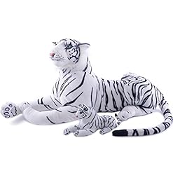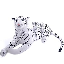 VERCART 43 inches Giant Realistic Stuffed Tiger Animals Soft Plush Toy White Tiger for Kids Birthday Gifts (with A Small Tiger)