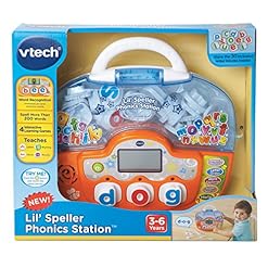 The Lil’ Speller Phonics Station by VTech helps your child learn letters and their sounds one by one or build more than 200 words. Fun sounds, melodies and the animated LCD screen bring words to life.