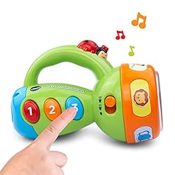 This early learning center teaches toddlers to count along and learn numbers 1, 2 and 3; a great toy flashlight for either your boy or girl toddler