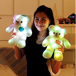WEWILL Brand Adorable LED Light up Glow Teddy Bear Pet, Teddy Bear Little Stuffed Toys, Stuffed Plush Toy with Colorful Flash LED Light, Stuffed Animal Toy Gifts for Children, 15 Inch